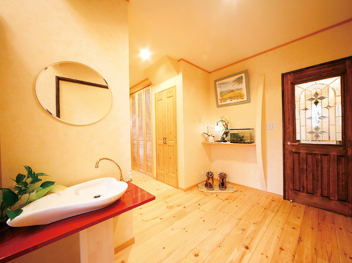 しかも、アウトドア派のKさんは細部にもこだわって、外と室内でシェアするユニークな床下&中2階収納、風呂場直行の脱衣所勝手口、食事も出来る広々サンデッキなど、まさに全てが“我が家仕様”。「今年は庭でキャンプをするのもいいかも」と話す笑顔が、この家の完成度の高さを物語っている。