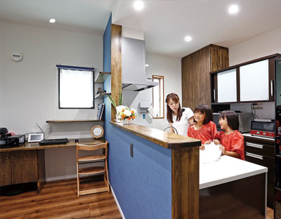 子育て中のKさんご夫婦が家づくりで重要視したのは住宅性能。「家は快適で安全であることが一番大事だと思うんです。『建築ネットワーク』さんの提案するスーパーウォール(SW)工法は、断熱・気密性・耐震など性能がとても高いんです」とご主人。建物全体を高性能断熱材で包み、外熱を遮断した魔法瓶のように室内の快適性を維持するSW工法。窓はアルゴンガス入りのトリプルサッシを採用しさらに性能を高めて、家の中はいつでも快適で静かな環境。家族が一緒に過ごす吹き抜けのリビングは、高窓から穏やかな陽光が射し、夏の盛りでも各階のエアコン一台で過ごせるという。「太陽光発電も設置しているのですが、SW工法は消費電力も抑えられ家計も助かっています」と奥様。さらに奥様のお気に入りは、玄関、洗面浴室、キッチンと繋がる回遊式の動線。効率的な動線で家事や日常生活がとてもスムーズだとか。優れた住宅性能工法を駆使し、さらに子育て世代のライフスタイルを汲み取った設計で、希望通りの快適な安心の暮らしが実現した。